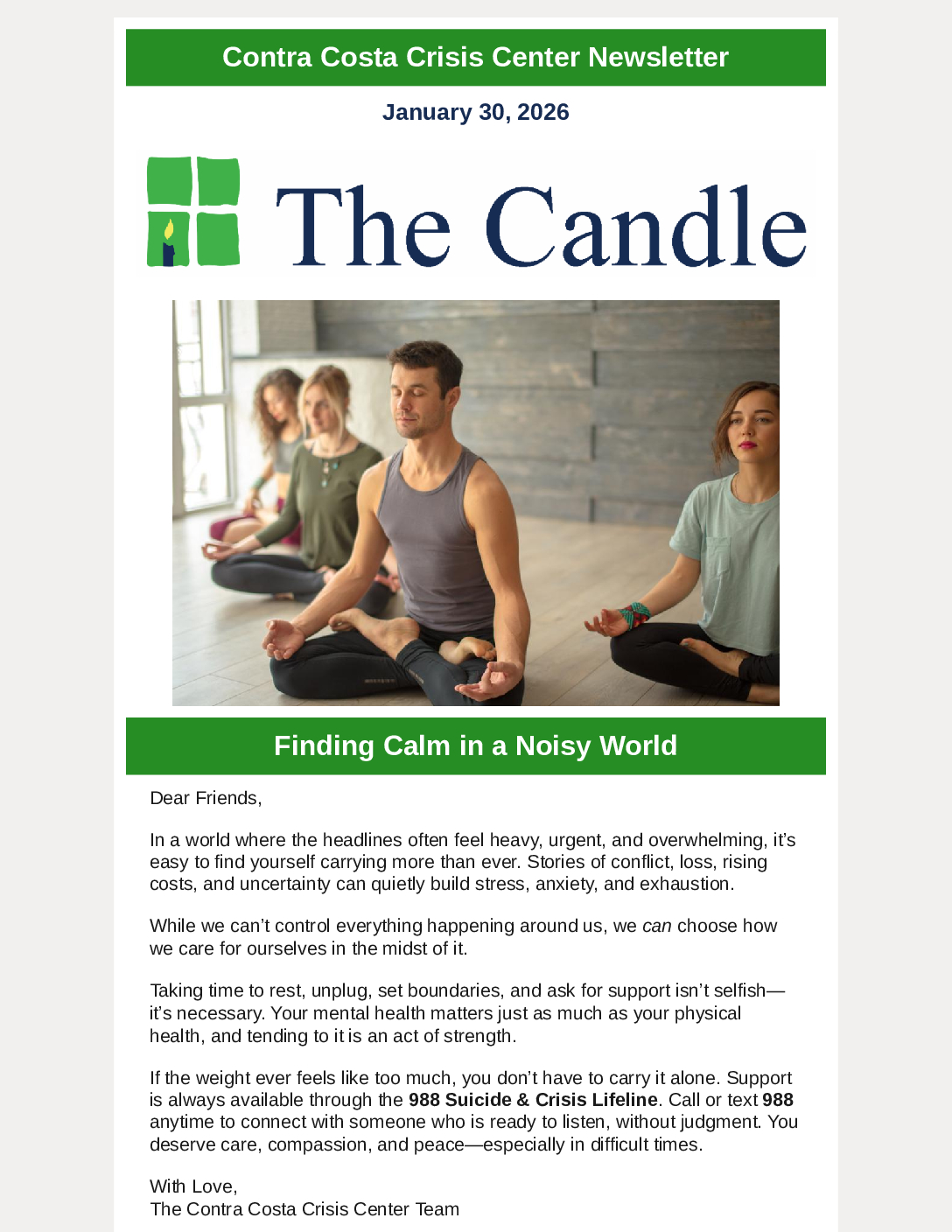 988 is not shutting down. Contra Costa Crisis Center remains proud to be a crisis center in the 988 Suicide and Crisis Lifeline Network. Despite recent confusion and viral misinformation, the 988 Suicide & Crisis Lifeline remains fully operational, providing free, confidential support to people across the U.S. 24/7.